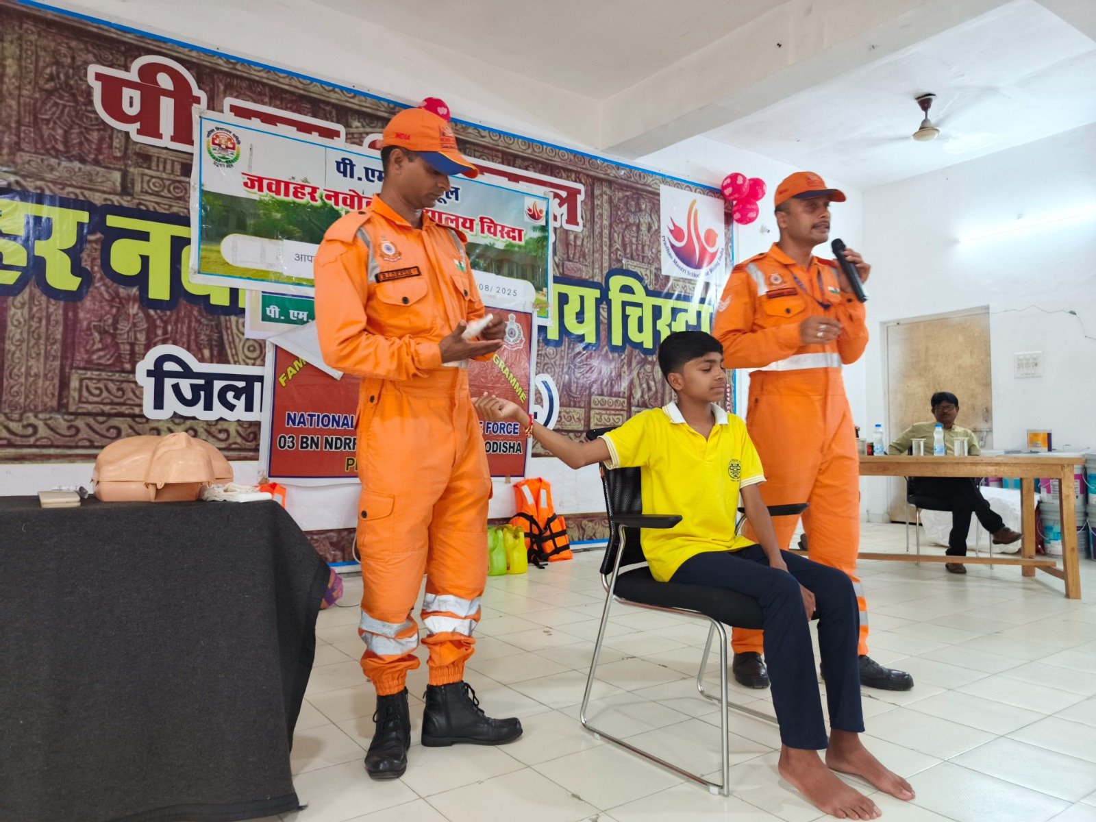के साथ समाज में आपदाओं के प्रति जागरूकता लाने काम भी करती है | किसी भी आपदा के समय स्थानीय लोग First responders होते है और यदि स्थानीय लोग को बचाव कौशलों का ज्ञान को तो इससे अनोकों जाने बचाई जा सक्ती है | इसके पश्चात् NDRF के अधिकारियों ने प्राथमिक चिकित्सा, सी.पी.आर.,स्ट्रेचर बनाना, , बाढ़, आगजनी, जैसी प्राकृतिक आपदाओं एवं औद्योगिक दुर्घटनाओं से निपटने के लिए आवश्यक सावधानियों और बचाव उपायों की जानकारी दी।टीम ने छात्रों के साथ मॉक ड्रिल आयोजित कर प्राथमिक चिकित्सा, सी.पी.आर.,स्ट्रेचर बनाकर आपात स्थिति में सुरक्षित निकासी की प्रक्रिया का अभ्यास कराया। साथ ही, प्राथमिक उपचार (First Aid) के तरीकों का प्रदर्शन कर घायल व्यक्ति को तुरंत मदद पहुंचाने के व्यावहारिक उपाय सिखाए। बचाव कार्यों में प्रयोग होने वाले उपकरणों जैसे लाइफ जैकेट, रस्सियां, फायर एक्सटिंग्विशर और स्ट्रेचर—का भी प्रदर्शन किया गया।