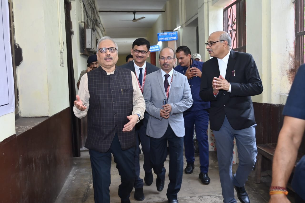 रहे। न्यायिक अधिकारीगणों को न्यायालयीन प्रकरणों के निराकरण हेतु आवश्यक दिशा-निर्देश दिये गये। न्यायालय भवन में साफ-सफाई पर संतोष व्यक्त किया गया। अधिवक्तागण भी उपस्थित रहे तथा उनसे चर्चा की गई।औचक निरीक्षण में माननीय मुख्य न्यायाधीश महोदय के साथ रजिस्ट्रार जनरल श्री रजनीश श्रीवास्तव, संयुक्त रजिस्ट्रार कम पीपीएस श्री एम.वी.एल.एन सुब्रहमन्यम एवं प्रोटोकॉल ऑफिसर श्री आर. एस. नेगी भी उपस्थित रहे।माननीय मुख्य न्यायाधीश श्री रमेश सिन्हा साहब के निरंतर प्रयासों से राज्य की न्यायालयीन व्यवस्था में सकारात्मक परिवर्तन हो रहा है।