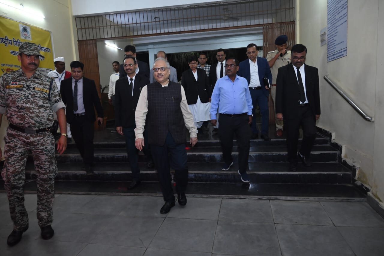 के दौरान जिला न्यायालय, रायगढ़ के प्रधान जिला एवं सत्र न्यायाधीश श्री जितेन्द्र कुमार व अन्य न्यायिक अधिकारीगण उपस्थित रहे। साथ ही जिले के अन्य प्रशासनिक अधिकारीगण भी उपस्थित रहे।विदित हो कि माननीय मुख्य न्यायाधीश महोदय द्वारा पूर्व में भी जिला रायगढ़ का निरीक्षण किया जा चुका है। पूर्व निरीक्षण में पायी गयी कमियों के निराकरण पर उनके द्वारा संतोष व्यक्त किया गया।माननीय मुख्य न्यायाधीश महोदय ने रायगढ़ में अधिवक्ताओं से मुलाकात की। अधिवक्वाओं द्वारा उनके आगमन पर हर्ष व्यक्त किया गया।तदुपरांत माननीय मुख्य न्यायाधीश महोदय द्वारा न्यायिक अधिकारियों के साथ बैठक भी ली गई। उनके न्यायालय में पुराने लंबित प्रकरणों की जानकारी ली और उन प्रकरणों को नियमानुसार व प्राथमिकता के साथ निराकृत करने के