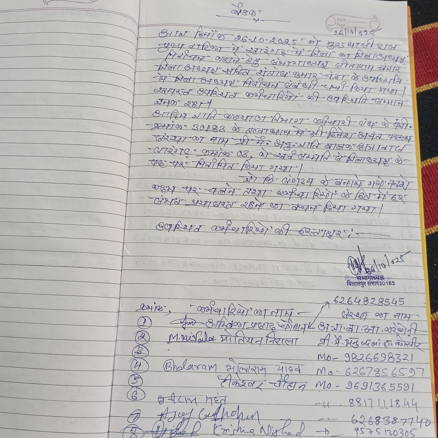 आज दिनांक 26.10.2025 को गुरु घासीदास पुष्प वाटिका में सारंगढ़ जिला में जिला अध्यक्ष हेतु श्री डी एल.देवांगन प्रदेशा अध्यक्ष के अनुसार सीताराम बंजारे बिलासपुर संभाग अध्यक्ष,संतोष कुमार चंद्रा जिला अध्यक्ष जिला शक्ति के उपस्थिति में जिला अध्यक्ष निर्वाचन के संबंध में चर्चा किया गया समस्त उपस्थित कर्मचारियों की उपस्थिति सम्मान जनक रहा आदिम जाति कल्याण