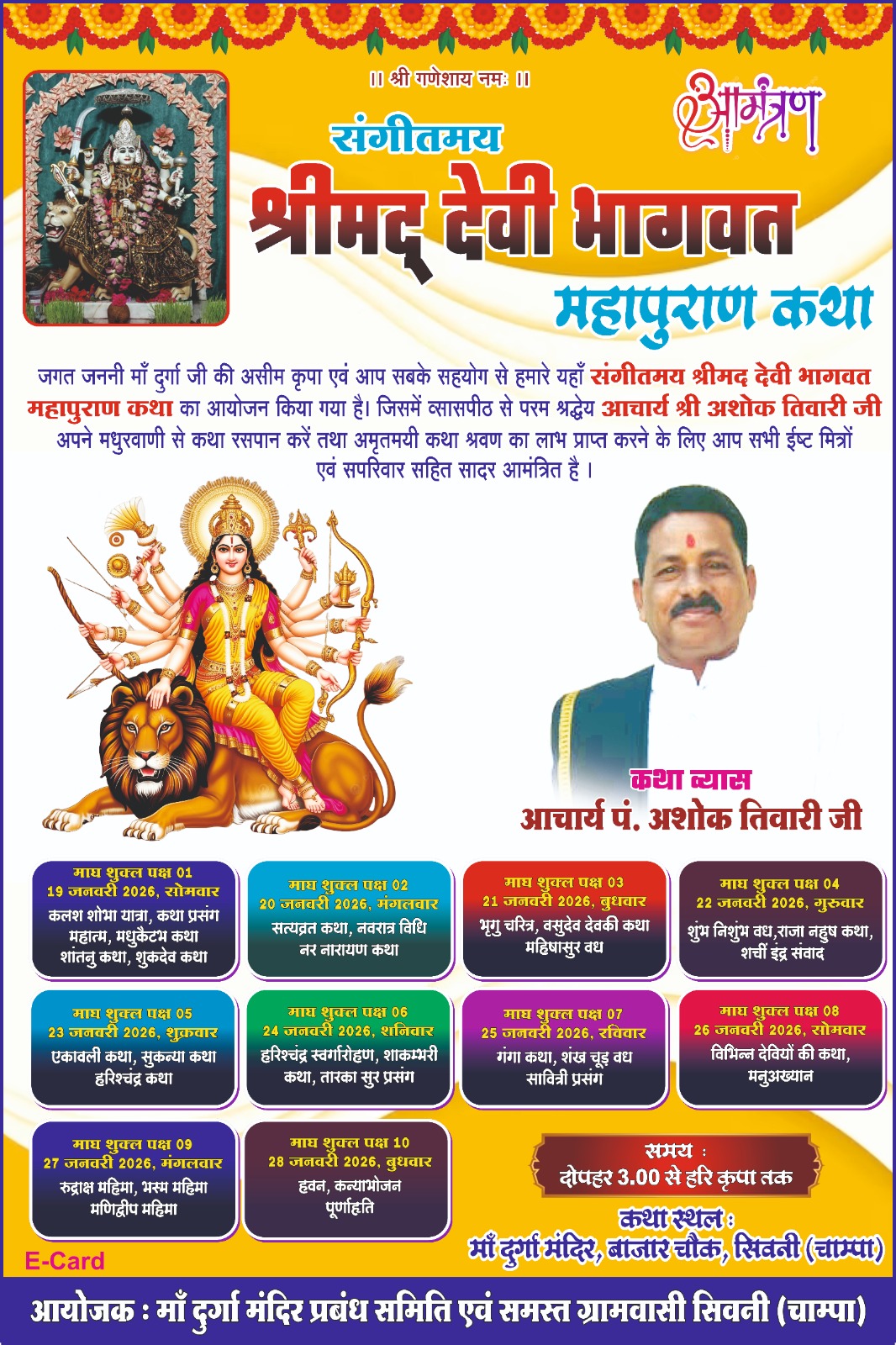 ग्राम सिवनी चांपा में प्रारंभ हुआश्रीमद् देवी भागवत महापुराण कथा व्यास आचार्य पंडित अशोक तिवारी जी के मुखारबिंद से