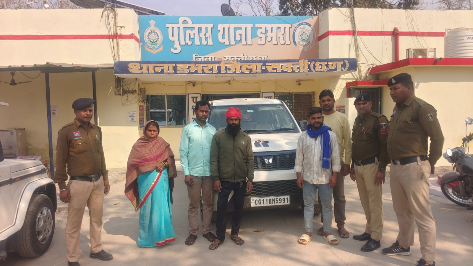 नंदनी भारद्वाज पति राकेश भारद्वाज उम्र 21 साल साकिन कांसा थाना डभरा ने थाना डभरा में सूचना दर्ज करायी कि इसके पति राकेश भारद्वाज पिता जयकुमार भारद्वाज उम्र 23 साल साकिन कांसा थाना डभरा जिला सक्ती (छ०ग०) को दिनांक 18.02.26 के दोपहर 12.00 बजे ग्राम केनापाली के टिकेश्वर लहरे के ईट भट्ठा से बोलेरो वाहन सफेद रंग सीजी 11 बीएम 5991 में 05 ब्यक्ति द्वारा अपहरण कर ले गया है सूचना प्राप्त होने पर सूचना की गंभीरता को देखते हुये वरिष्ठ अधिकारियों को अवगत कराया गया जिसमे श्रीमान् पुलिस अधीक्षक महोदय श्री प्रफुल्ल कुमार ठाकुर (भा.पु.से.) अतिरिक्त पुलिस अधीक्षक महोदय श्री पंकज पटेल (रा.पु.से.), एवं अनुविभागीय अधिकारी पुलिस चंद्रपुर डभरा सुमित गुप्ता (रा.पु.से.) के मार्गदर्शन एवं गंभीर अपराधों के त्वरित निराकरण के आदेश प्राप्त होने पर थाना प्रभारी डभरा द्वारा एक विशेष टीम गठीत कर आरोपी पतासाजी हेतु हमराह स्टाफ एवं गवाहों को साथ लेकर नाकाबंदी के दौरान अपहृत राकेश भारद्वाज बरामद कर दस्तयाब कर पूछताछ किया गया जिन्होंने बताया कि दिनांक 15.02.26 को नरेश टण्डन निवासी खरवानी बेलादुला से 10000 रू. काम करने ईट बनाने पंजाब जाने के लिये एडवांस के रूप में लिया था। नरेश टण्डन के द्वारा इसे संपर्क नही करने पर में केनापाली में ही अपनी पत्नी के साथ ईंट बनाने का काम कर रहा था कि दिनांक 18.02.26 को सुबह ईट बनाकर दोपहर में खाना खाकर अपने जुग्गी में पत्नी तथा बच्चे के साथ आराम कर रहा था दोपहर करीबन 12.00 बजे जुग्गी के सामने नरेश ने प्रार्थीया को आवाज दिया तब वह जुग्गी से बाहर निकला तो देखा नरेश के साथ शिवा टण्डन, देवानंद भारद्वाज, परमेश्वरी टण्डन साकिनान खरवानी बेलादुला एव कीर्तन खाण्डे निवासी जैजैपुर के लोग थे जो इसे बोले की एडवांस में पैसा लिये हो हमारे साथ काम करने पजाब नहीं जा रहे हो कहकर आवेदक को माँ बहन की गाली गलौच कर जान से मारने की धमकी देते हुये हाथ मुक्का से मारपीट करते हुये इसे जबरदस्ती अपने बोलेरो वाहन सफेद रंग सीजी 11 बीएम 5991 में बैठाकर अपने गांव खरवानी लेकर चले गये थे वहा आवेदक को अपने घर में बंद कर मारपीट कर रहे थे उसके बाद नंदनी के मोबाईल पर बार बार फोन कर खरवानी बुला रहे थे तथा वहां से पुनः बोलेरो में बैठाकर इधर उधर घुमा रहे थे जो घोघरी की ओर जा रहे थे कि रिपोर्ट पर अपराध क्रमांक 59/2026 धारा 140 (3),296,115 (2), 351 (3) 3 (5) बी एम.एस. कायम कर विवेचना में लिया गया है। दौरान विवेचना आरोपियों से पूछताछ कर मेमोरेण्डम कथन लिया गया जो अपने-अपने कथन में घटना घटित करना स्वीकार किये तथा वाहन चालक देवानंद भारद्वाज के द्वारा घटना में प्रयुक्त बोलेरो वाहन सफेद रंग सीजी 11 बीएम 5991 एवं एक नग रियलमी कम्पनी का मोबाईल तथा आरोपी शिवा टण्डन के द्वारा एक नग मोटोरोला कम्पनी क