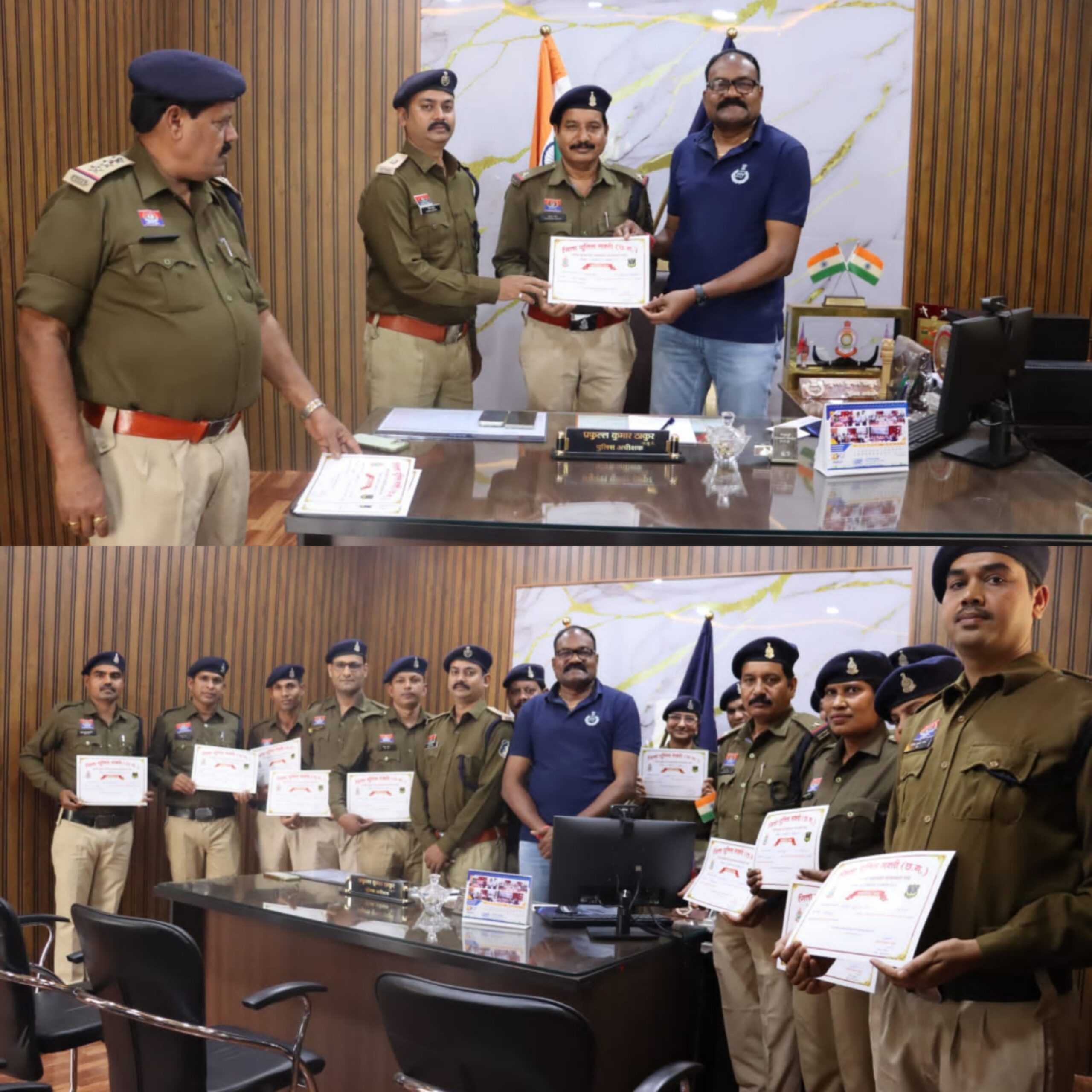 जिला सक्ती पुलिसअधीक्षक प्रफुल्ल ठाकुर के द्वारा दिनांक 22.02.2026जिला सक्ती के विभिन्न थाना/चौकी में पदस्थ 24×07 ड्यूटी करने वाले कर्मचारी को किया सम्मानित
