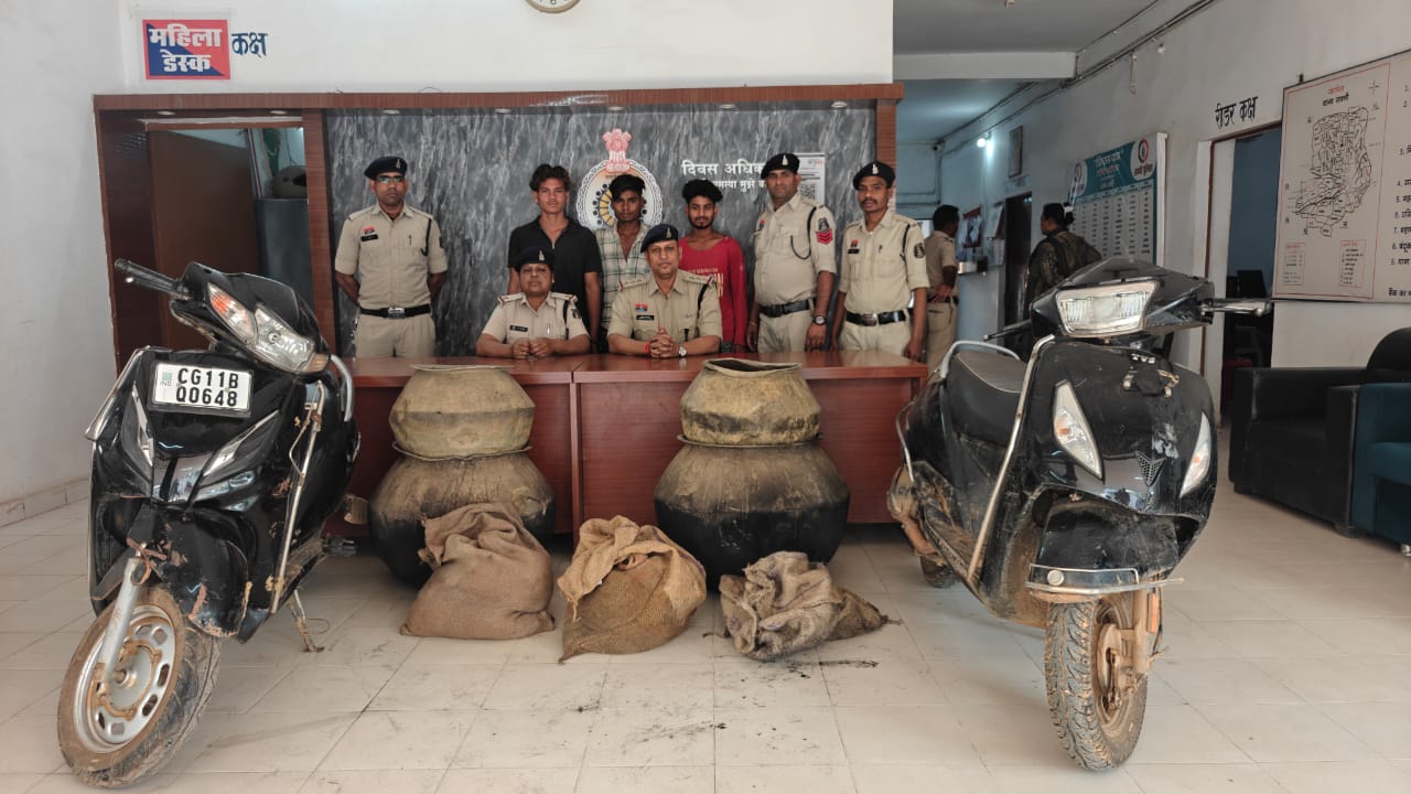 गिरफ्तारआरोपियों के कब्जे से 50 लीटर कच्ची महुआ शराब जप्तशराब बनाने के 04 नग सिल्वर हंडा एवं 02 स्कूटी वाहन जप्तकुल जप्ती मूल्य लगभग ₹70,000/—-👤 आरोपियों का विवरण1. बादल खूंटे, पिता दशरथ, उम्र 19 वर्ष, निवासी हरदी, थाना सक्ती2. हुनेश बंजारे, पिता पेश लाल, उम्र 19 वर्ष, निवासी हरदी, थाना सक्ती3. लक्ष्मी खूंटे, पिता गणेश, उम्र 20 वर्ष, निवासी हरदी, थाना सक्तीजिला सक्ती (छ.ग.)—📌 मामले का संक्षिप्त विवरणदिनांक 21.03.2026 को थाना सक्ती पुलिस को मुखबिर से सूचना प्राप्त हुई कि ग्राम हरदी स्थित ठाकुर डबरी (सूखा तालाब) में कुछ व्यक्तियों द्वारा हाथ भट्ठी के माध्यम से अवैध कच्ची महुआ शराब बनाई जा रही है।सूचना पर तत्काल वरिष्ठ अधिकारियों को अवगत कराया गया एवं उनके निर्देशन में पुलिस टीम द्वारा गवाहों के साथ मौके पर दबिश दी गई।मौके पर तीन आरोपी दो स्कूटी वाहनों में जूट की बोरियों में कच्ची महुआ शराब भरकर बिक्री हेतु ले जाते हुए पकड़े गए। पूछताछ में आरोपियों ने अपने नाम उपरोक्त बताए।मौके पर तलाशी लेने पर आरोपियों के कब्जे से कुल 50 लीटर कच्ची महुआ शराब जप्त की गई। साथ ही शराब निर्माण स्थल पर जाकर देखा गया कि हाथ भट्ठी से शराब बनाई जा रही थी, जिसे मौके पर नष्ट किया गया।आरोपियों से शराब रखने, बनाने एवं परिवहन करने संबंधी वैध दस्तावेज प्रस्तुत करने हेतु नोटिस दिया गया, परंतु उनके द्वारा कोई वैध दस्तावेज प्रस्तुत नहीं किया गया।—🚔 पुलिस कार्यवाहीआरोपियों के विरुद्ध धारा 34(2), 42 आबकारी एक्ट के तहत अपराध पंजीबद्ध कर उन्हें विधिवत गिरफ्तार किया गया एवं न्यायिक रिमांड पर भेजा गया है।सक्ती पुलिस द्वारा अवैध शराब, जुआ एवं सट्टा के विरुद्ध लगातार प्रभावी कार्यवाही की जा रही है।👮♂️ सराहनीय योगदानउक्त कार्यवाही में निरीक्षक श्री लखन लाल पटेल, थाना प्रभारी सक्ती के नेतृत्व मेंउप निरीक्षक नीलमणि कुसुम, प्रधान आरक्षक हेमंत राठौर, आरक्षक यादराम चन्द्रा, शैलेन्द्र देवांगन, महासिंह सिदार, हेमंत केसरिया, प्रमोद खाखा एवं विकास राठौर की महत्वपूर्ण भूमिका रही।
