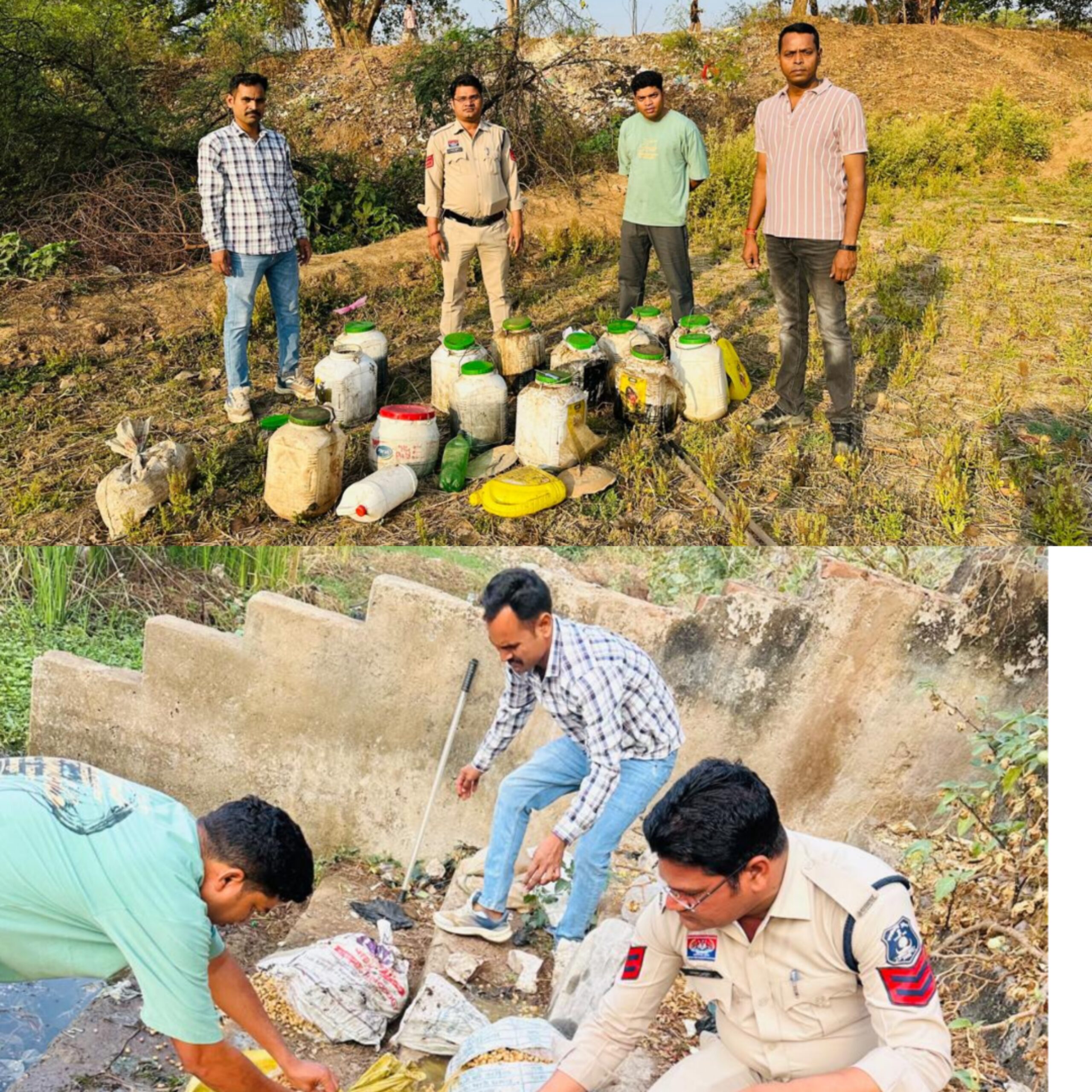 थाना जैजैपुर के ग्राम ओड़ेकेरा में तेंदवाही तालाब में भारी मात्रा में अवैध महुआ पास नष्ट किया गया थाना जैजैपुर जिला सक्ती छ0ग0 थाना जैजैपुर पुलिस की कार्यवाही श्रीमान पुलिस अधीक्षक महोदय प्रफुल्ल कुमार ठाकुर (भा0पु0से0) अतिरिक्त पुलिस अधीक्षक महोदय श्री पंकज पटेल (रा0पु0से0), पुलिस अनुविभागीय अधिकारी सक्ती श्रीमति भुनेश्वरी पैंकरा (रा0पु0से0) द्वारा अवैध शराब निर्माण, संग्रहण एवं बिक्री करने वालो के खिलाफ सख्त से सख्त कार्यवाही किये जाने दिए गए निर्देश के परिपालन में थाना जैजैपुर पुलिस द्वारा दिनांक 03.04.2026 को मुखबीर सूचना मिला कि ग्राम ग्राम ओड़ेकेरा के तेंदवाही तालाब पार में शराब बनाने हेतु भारी मात्रा में महुआ पास (कच्चा माल) डूबाकर रखे हैं कि सूचना पर ग्राम ओड़ेकेरा के तेंदवाही तालाब में रेड कार्यवाही किया गया जो तेंदवाही तालाब में भारी मात्रा में अवैध रूप से महुआ पास (कच्चा माल) मिलने पर उक्त महुआ पास (कच्चा माल) को नष्टीकरण किया गया। उक्त कार्यवाही मे थाना प्रभारी उप निरीक्षक भूपेन्द्र सिंह चन्द्रा, प्र0आर0 330 परमानंद घृतलहरे, आर0 292 मनोज लहरे, 184 राधेश्याम टण्डन का विशेष योगदान रहा। भविष्य में अवैध शराब कोचिया लोगों के विरूद्ध कार्यवाही जारी रहेगी।