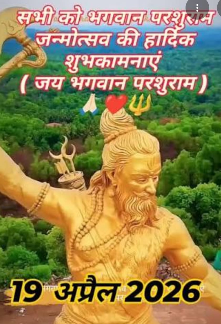 भगवान परशुराम जन्मोत्सव मनाने के लिए हुआ बैठक का आयोजन आगामी 19 अप्रैल 2026 को भगवान परशुराम जन्मोत्सव का धूमधाम से आयोजन करने के लिए धर्मशाला में सर्व ब्राह्मण समाज की बैठक आयोजन हुई जिसमें हर वर्ष की भांति इस वर्ष भी भगवान परशुराम जन्मोत्सव को धूमधाम से मनाने का निर्णय लिया गया इस कार्यक्रम में प्रात पूजा अर्चना तथा शाम को शोभा यात्रा एवं अन्य कई कार्यक्रमों का आयोजन करने का निर्णय लिया गया। कार्यक्रम का आयोजन करने के लिए आयोजन समिति की जिम्मेदारी युवाओं को सौंपी गई। उक्त बैठक में सर्व ब्राह्मण समाज के अध्यक्ष अधिवक्ता दिगंबर प्रसाद चौबे ,पूर्व अध्यक्ष राजेश शर्मा (बाबा),देवेंद्र नाथ अग्निहोत्री,रमेश तिवारी, दीनदयाल शर्मा ,राज शर्मा, विष्णु शर्मा ,सुमित शर्मा (नवभारत) ,उमेश शर्मा (संगीता स्वीट्स)अभिषेक शर्मा (मारवाड़ी भोजनालय)अजय शर्मा,बंटी शर्मा विप्र जन बड़ी संख्या में मौजूद थे।